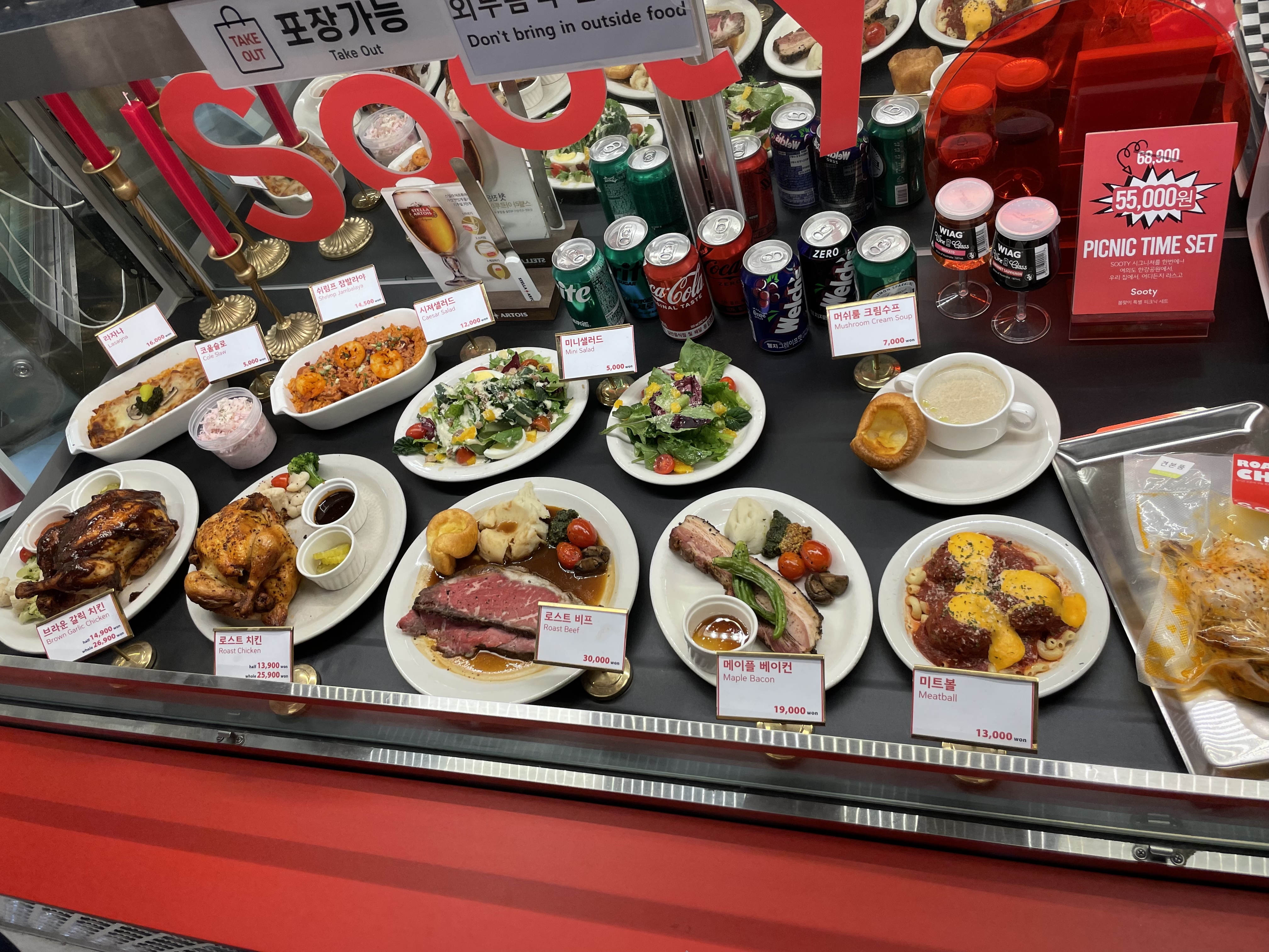 로스트 비프와 메이플 베이컨이 주력 메뉴인데 저희는 로스트 비프는 '로리스 더 프라임 립'보다 맛있을 것 같진 않아보여서 패스하고, 메이플 베이컨과 미트볼, 미니 샐러드와 제로콜라를 주문했습니다.