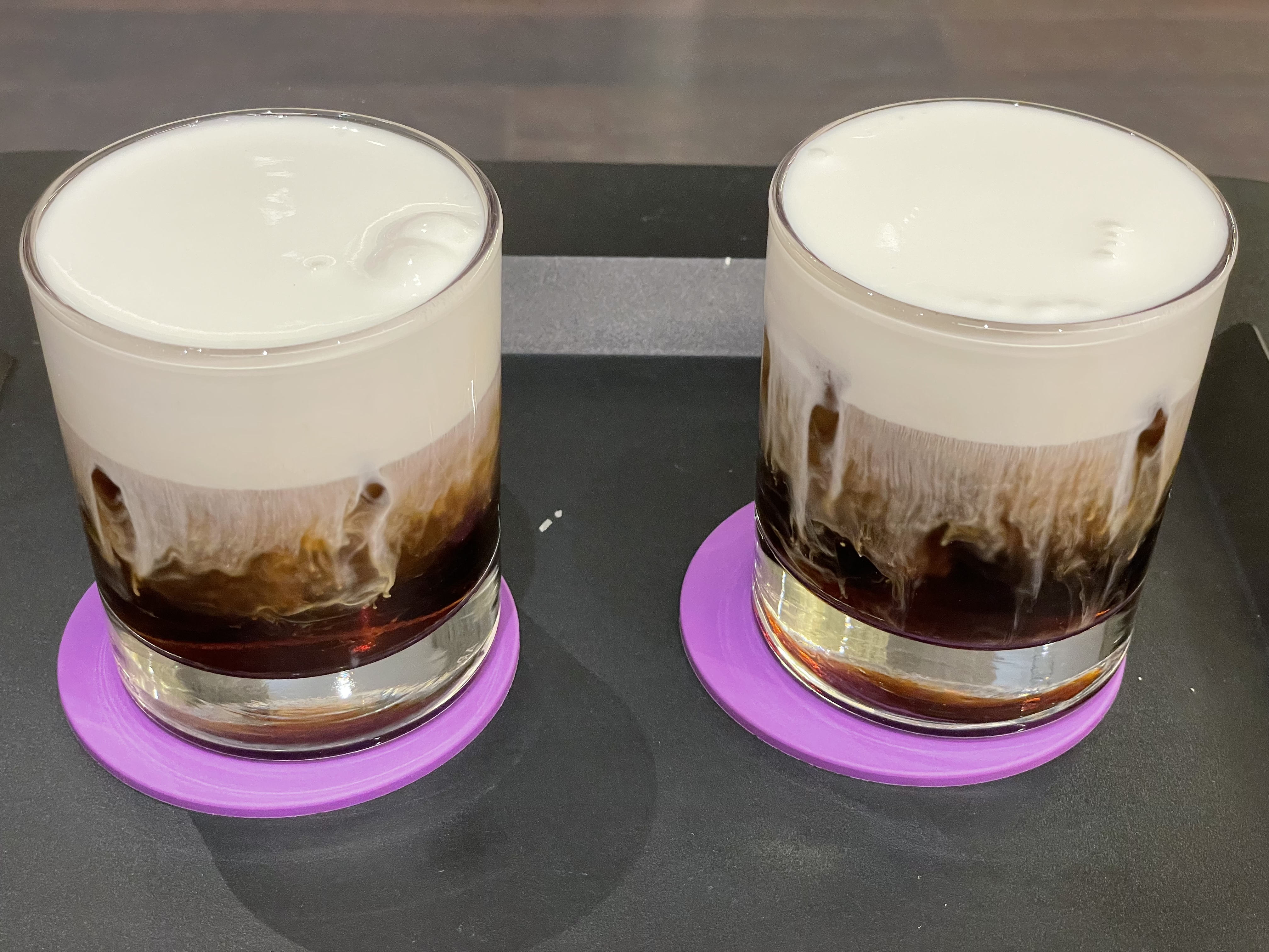음료의 거의 절반 가까이 크림이 담겨 있는 모습이 보이시나요?