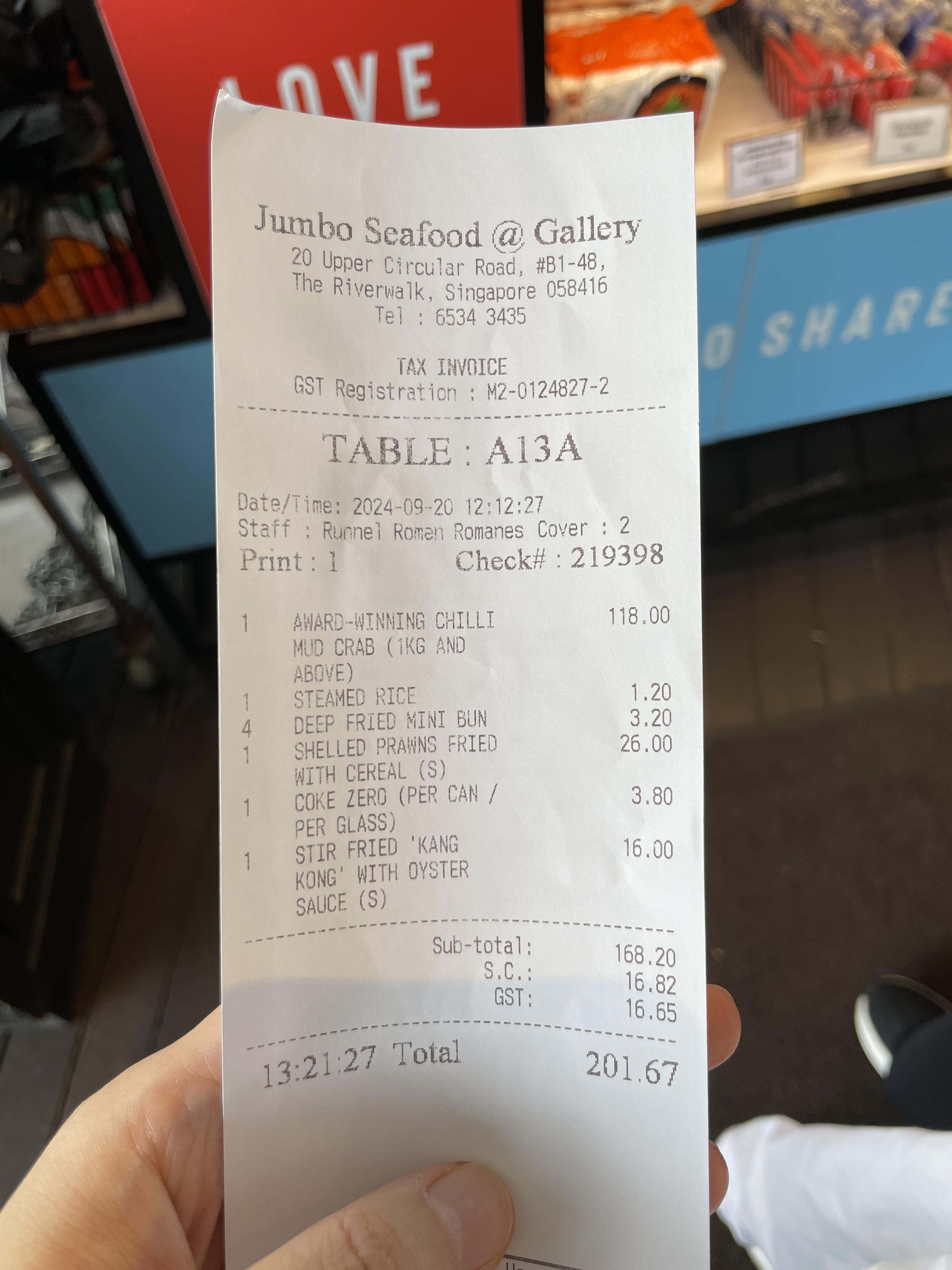 저희는 이미 먹었던 바 있는 award winning chilli mud clab을 먹었고, 추가로 맛있다고 소문난 시리얼 새우(껍질 까진 것으로 주문했습니다. 저희처럼 귀찮으신 분들은 껍질 까신 것으로 주문하시면 먹기도 편하고 좋습니다.), 미니번, 공심채 볶음 굴소스 그리고 일반 밥을 주문했습니다.